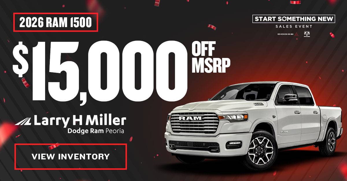 By providing your information or texting and calling us directly, you agree to receive manual, automated and pre-recorded texts, emails, and phone calls from Larry H. Miller Dodge Ram Peoria, its parent company Asbury Automotive, and all affiliates including our manufacturer and distributor partners. These informational and marketing communications may be powered by Artificial Intelligence, tailored to give you the most guest-centric experience possible. Messages and data rates may apply.