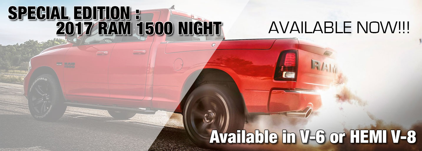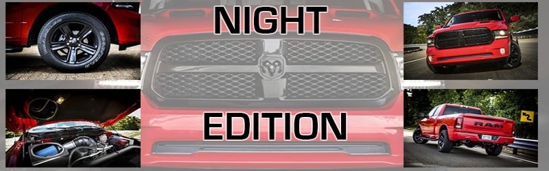 The all-new 2017 RAM 1500 Night Edition is a 1500 model that gives truck fans the bold style they have been asking for in a straight-from-the-factory customized truck! The 2017 RAM 1500 Night Edition is based on the Sport model - while elevating it to the next level with blacked-out features, including wheels, grille and badging.