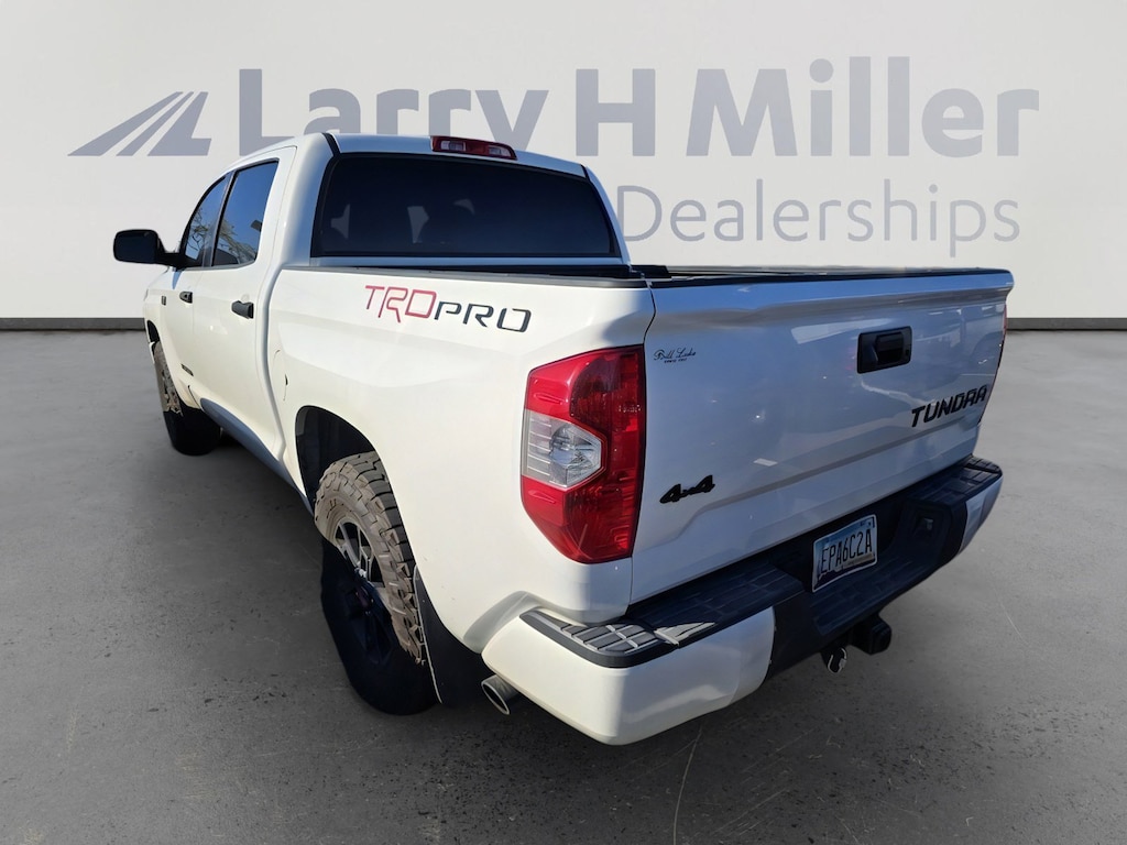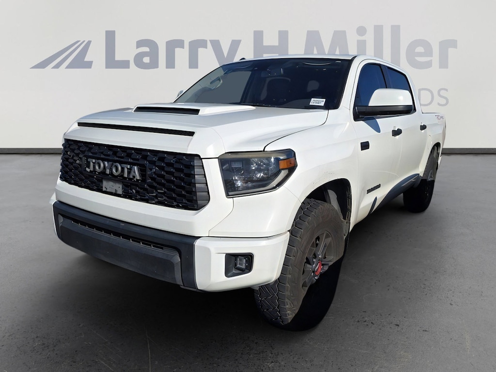 This 2019 Super White Toyota Tundra TRD Pro 4WD is well equipped and includes these features and benefits.: 4WD, ABS brakes, Active Cruise Control, Alloy wheels, Compass, Electronic Stability Control, Heated door mirrors, Illuminated entry, Low tire pressure warning, Navigation System, Power moonroof, Remote keyless entry, Traction control, 38 Gallon Fuel Tank Capacity, 4-Wheel Disc Brakes, 9 Speakers, Air Conditioning, AM/FM radio: SiriusXM, Anti-Theft Immobilizer w/Alarm, Auto High-beam Headlights, Auto-Dimming Rear-View Mirror, Auto-dimming Rear-View mirror, Brake assist, Bumpers: body-color, CD player, Color-Keyed Power Heated Exterior Mirrors, Deck Rail System, Delay-off headlights, Driver door bin, Driver vanity mirror, Dual front impact airbags, Dual front side impact airbags, Exterior Parking Camera Rear, Front anti-roll bar, Front Bucket Seats, Front Bucket Seats w/TRD Pro Logos, Front Center Armrest, Front fog lights, Front reading lights, Front wheel independent suspension, Fully automatic headlights, Garage door transmitter: HomeLink, HomeLink Universal Transceiver, Knee airbag, Leather Seat Trim (LF), Leather Shift Knob, Occupant sensing airbag, Outside temperature display, Overhead airbag, Overhead console, Panic alarm, Passenger door bin, Passenger vanity mirror, Power door mirrors, Power driver seat, Power steering, Power Tilt & Slide Moonroof w/Sliding Sunshade, Power windows, Radio data system, Radio: Entune Premium Audio AM/FM w/HD Radio & CD, Rear reading lights, Rear seat center armrest, Rear step bumper, Rear window defroster, Rigid Industries LED Fog Lights, Security system, Speed control, Speed-sensing steering, Split folding rear seat, Steering wheel mounted audio controls, Tachometer, TBD Axle Ratio, Telescoping steering wheel, Tilt steering wheel, Trip computer, Variably intermittent wipers, Voltmeter, and Wheels: 18 BBS 5-Spoke Satin Black Forged-Alum. 4WD, ABS brakes, Active Cruise Control, Alloy wheels, Compass, Electronic Stability Control, Heated door mirrors, Illuminated entry, Low tire pressure warning, Navigation System, Power moonroof, Remote keyless entry, Traction control.